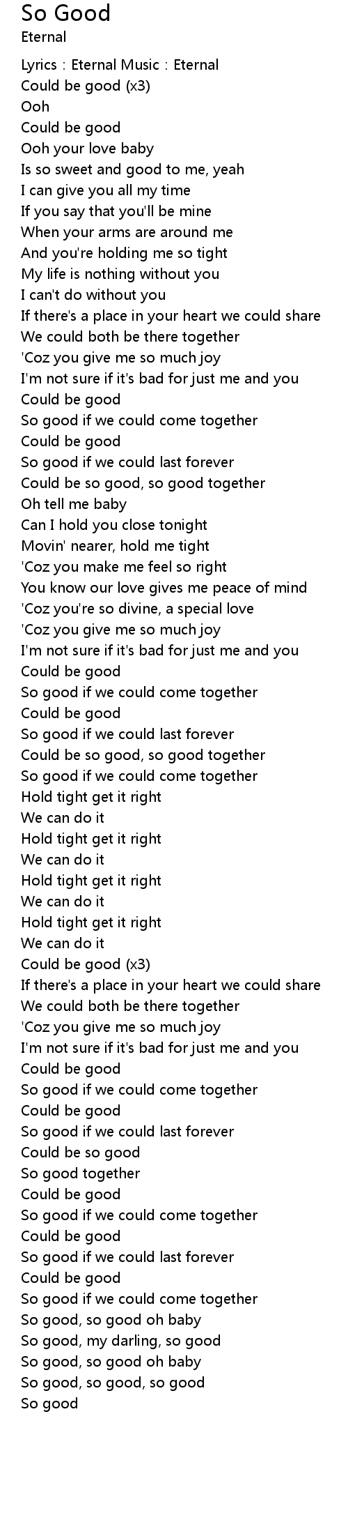 | Could be so good, so good together | |