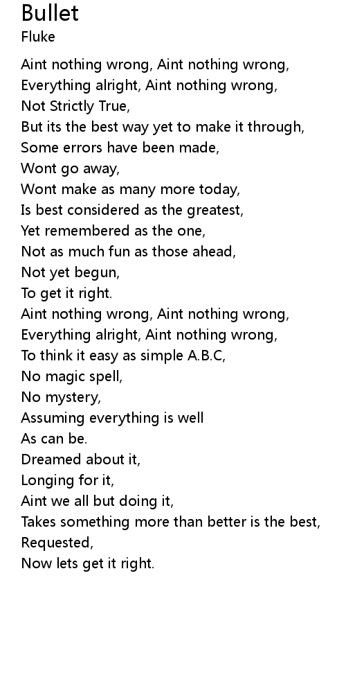 | Everything alright, Aint nothing wrong, | |
