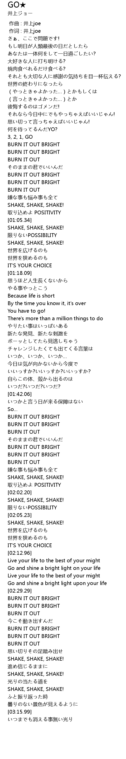| [00:01.00] | 作词 : 井上joe |