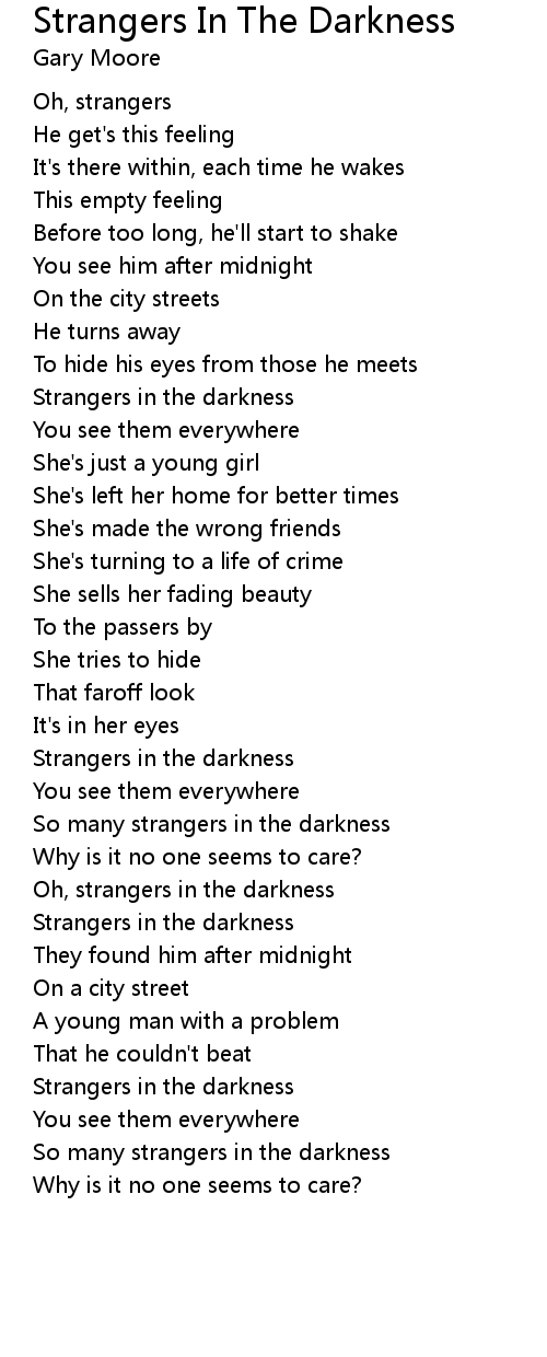 Oh, strangers in the darkness |