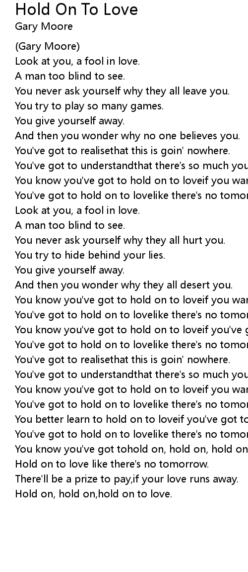 You better learn to hold on to loveif you've got to beg, steal or borrow. |