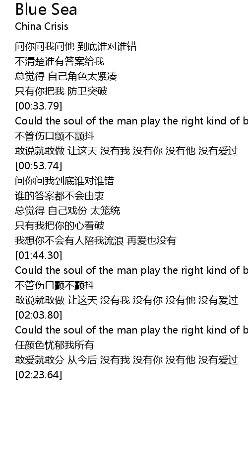 | [02:04.84] | Could the soul of the man play the right kind of blues |