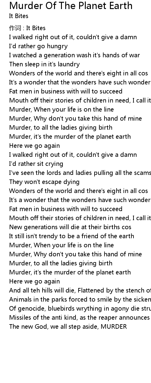 | And all teh hills will die, Flattened by the stench of mankind | |