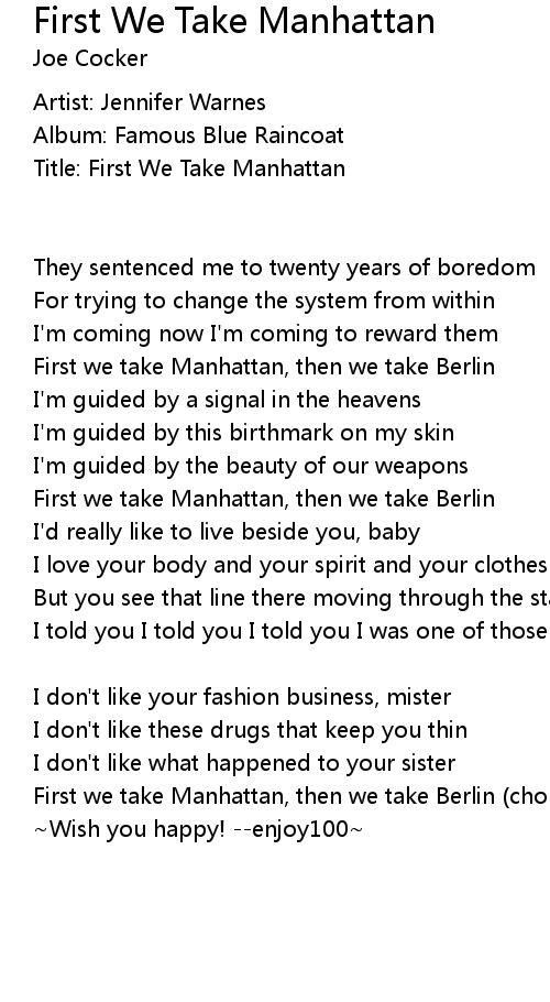 First we take Manhattan, then we take Berlin (chorus) |