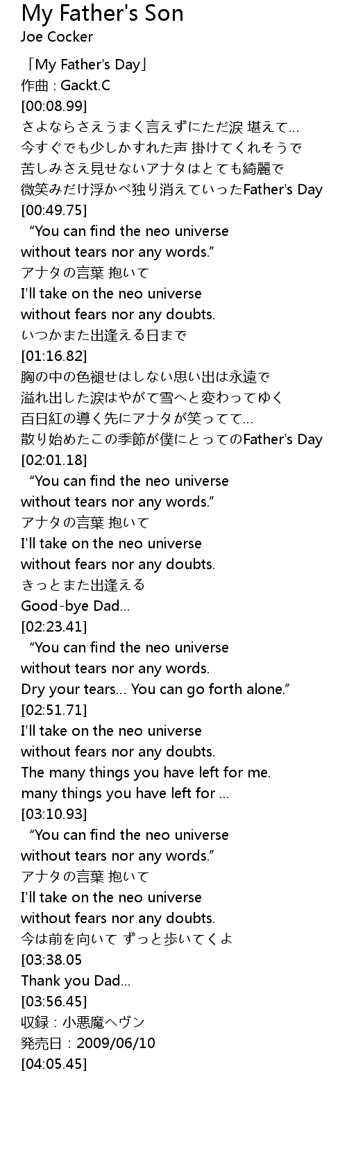 | [03:48.21][03:38.05] | Good-Bye Dad... |