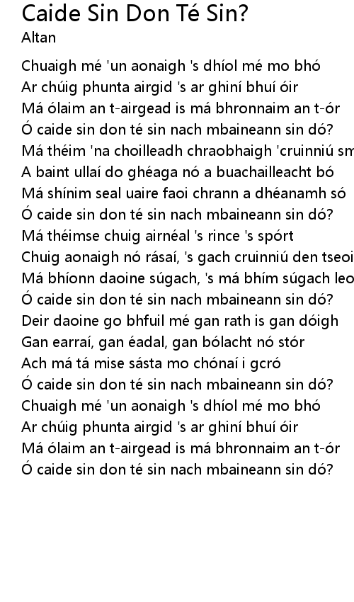| Ó caide sin don te sin nach mbaineann sin do? | |
