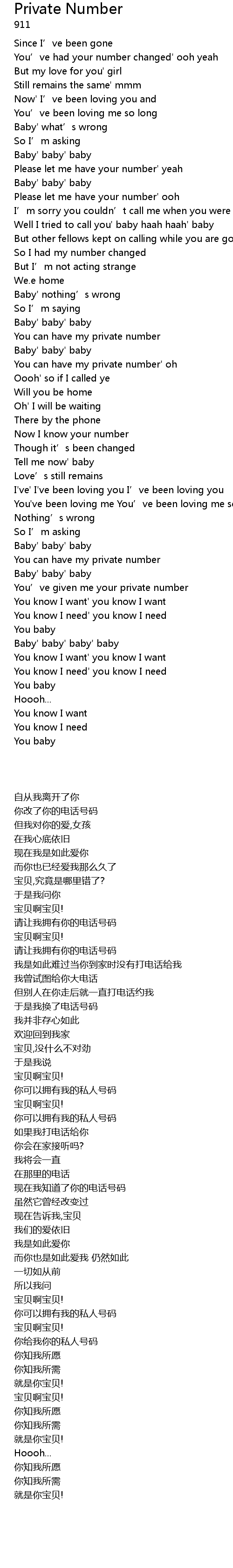 | [01:13.930] | Well I tried to call you' baby haah haah' baby |