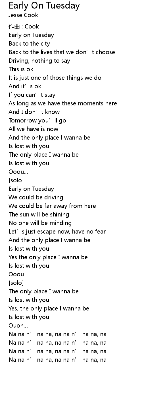 | Song | Early On Tuesday |