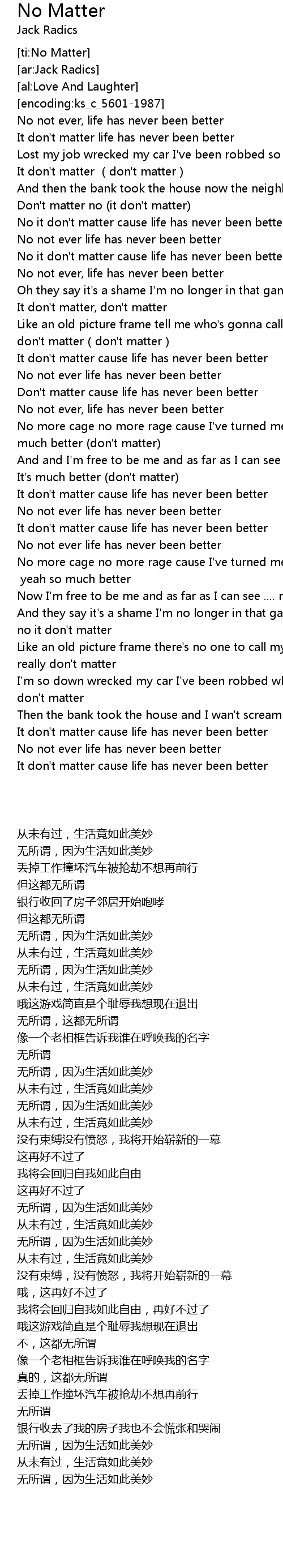 | [02:14.91] | It's much better (don't matter) |