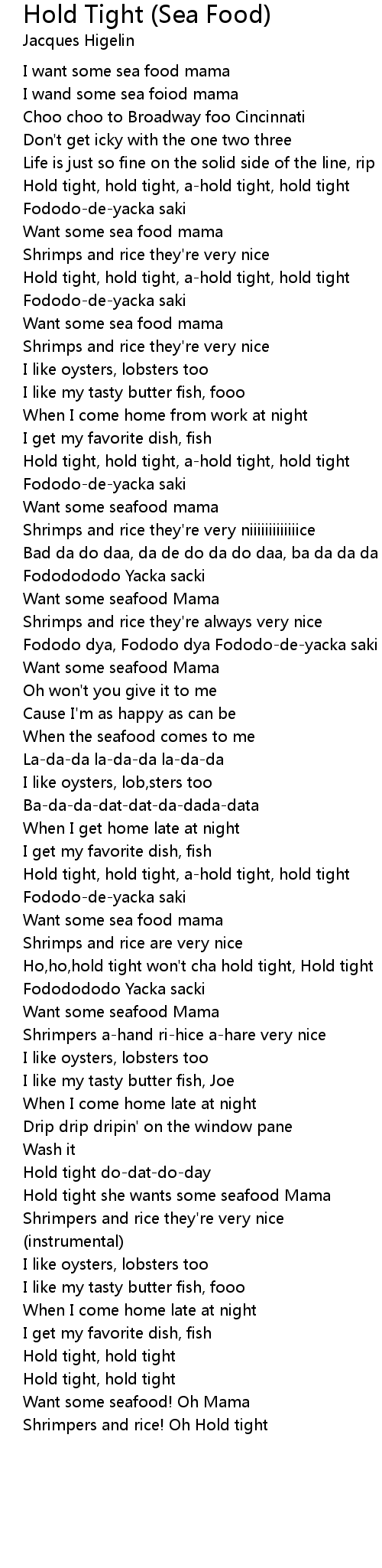 Ho,ho,hold tight won't cha hold tight, Hold tight |