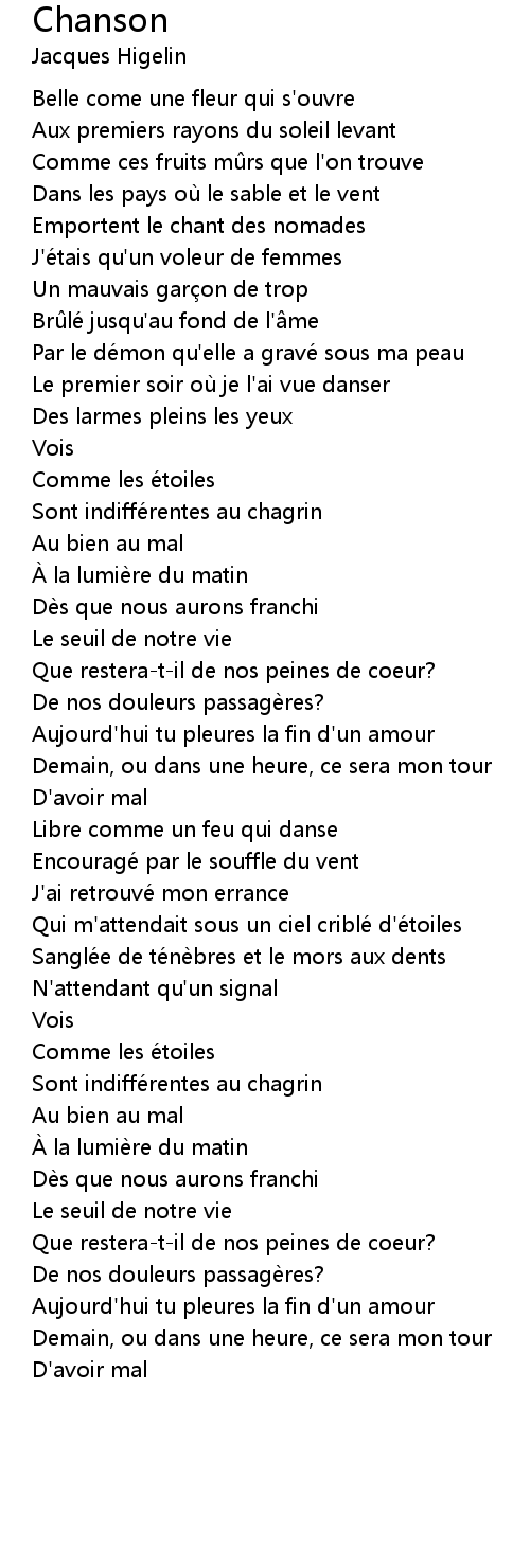 | Qui m' attendait sous un ciel crible d'e toiles | |