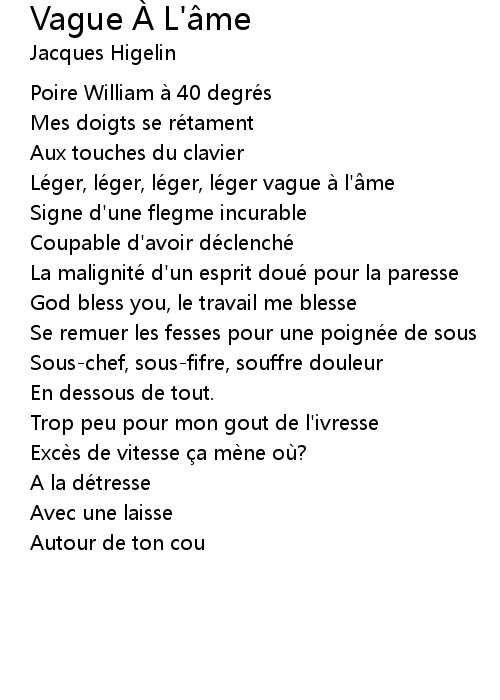 | Le ger, le ger, le ger, le ger vague a l' me | |