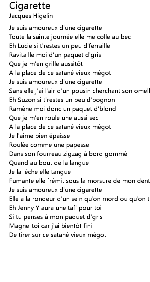 | Je suis amoureux d' une cigarette | |