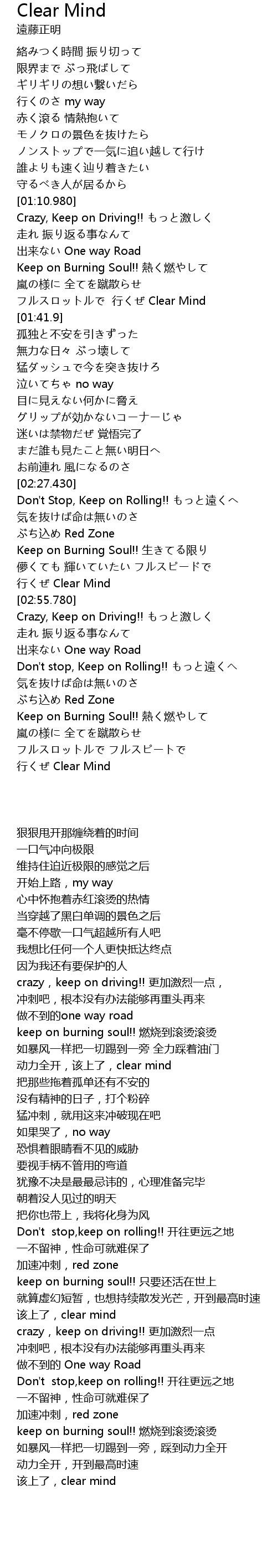 | [04:14.90] | 行くぜ Clear Mind |