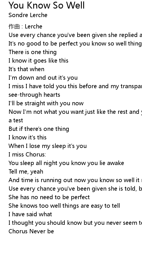 | Song | You Know So Well |