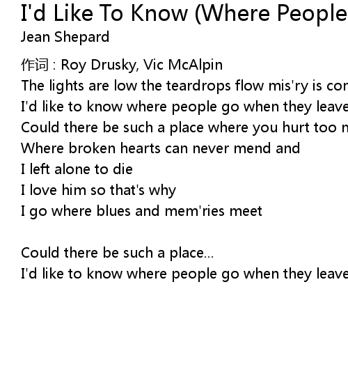 | Song | I'd Like To Know (Where People Go) |