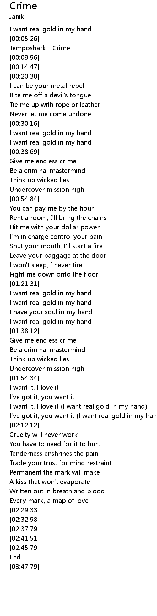 | [00:38.97] | Give me endless crime |