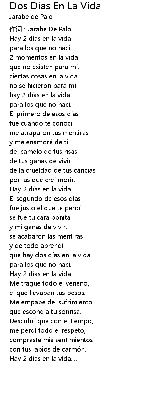 | Song | Dos Días En La Vida |