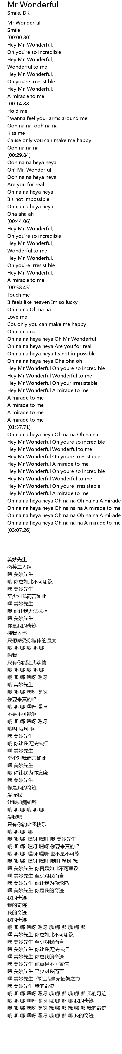 | [01:39.61] | Hey Mr Wonderful A mirade to me |