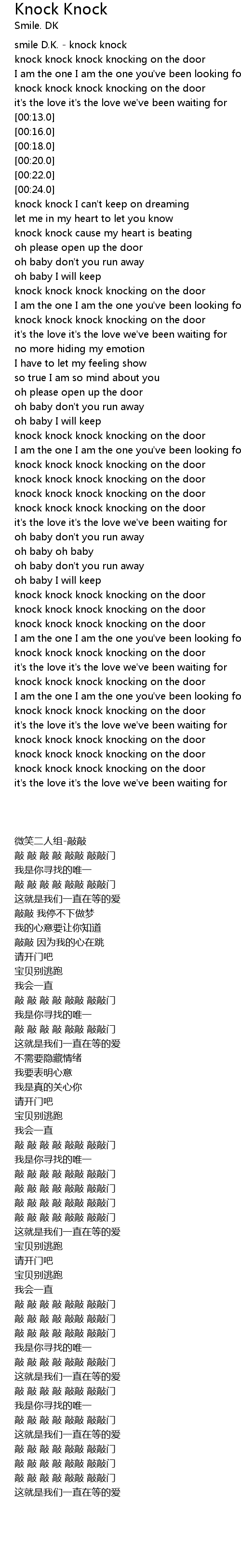 | [00:28.780] | knock knock I can' t keep on dreaming |