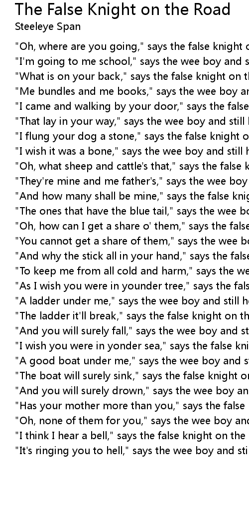 The False Knight on the Road Lyrics
