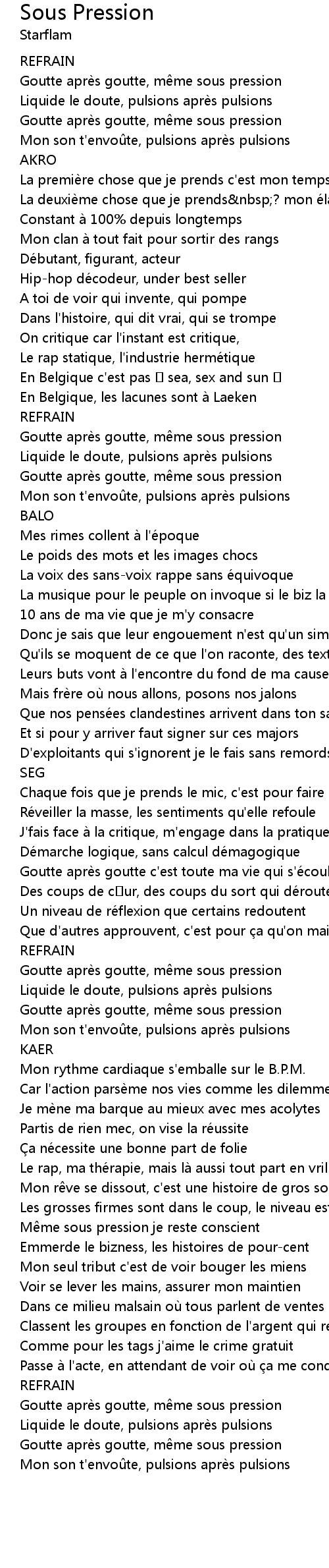 | Goutte apre s goutte c' est toute ma vie qui s'e coule que t'e coutes | |