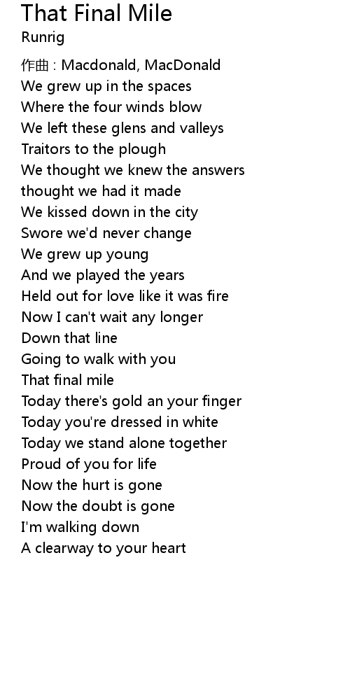 | Song | That Final Mile |