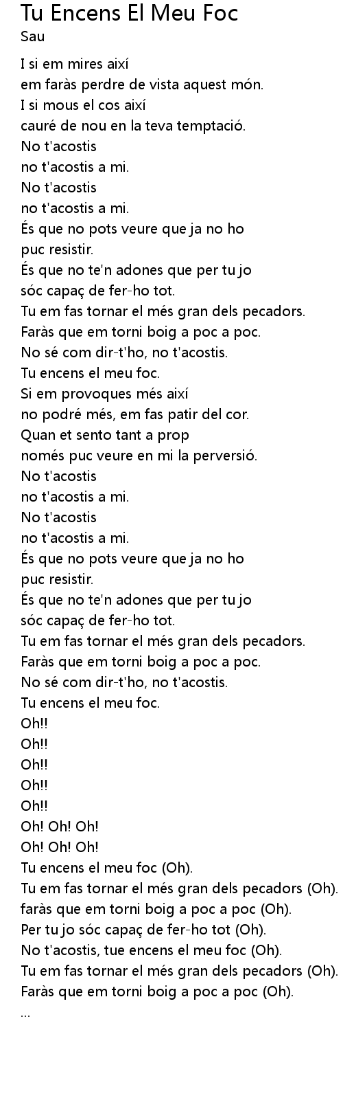 | No t'acostis, tue encens el meu foc (Oh). | |