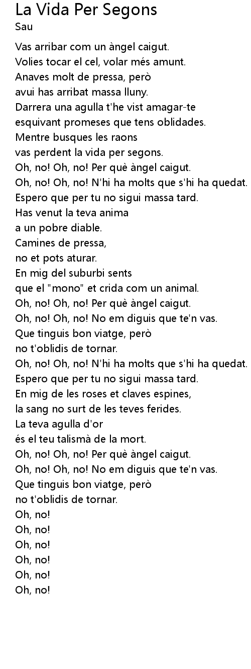 | Oh, no! Oh, no! Per què à ngel caigut. | |