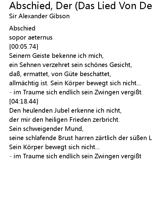 | Song | Abschied, Der (Das Lied Von Der Erde No 6) |