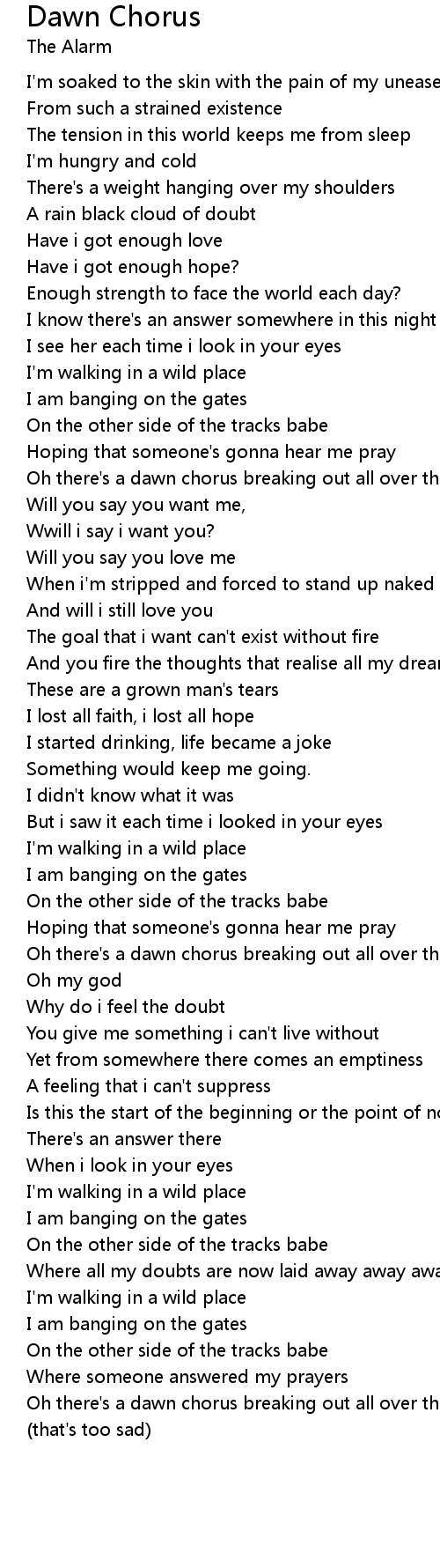 | Oh there's a dawn chorus breaking out all over the town | |