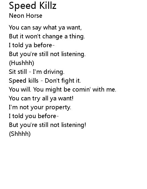 | Speed kills - Don't fight it. | |
