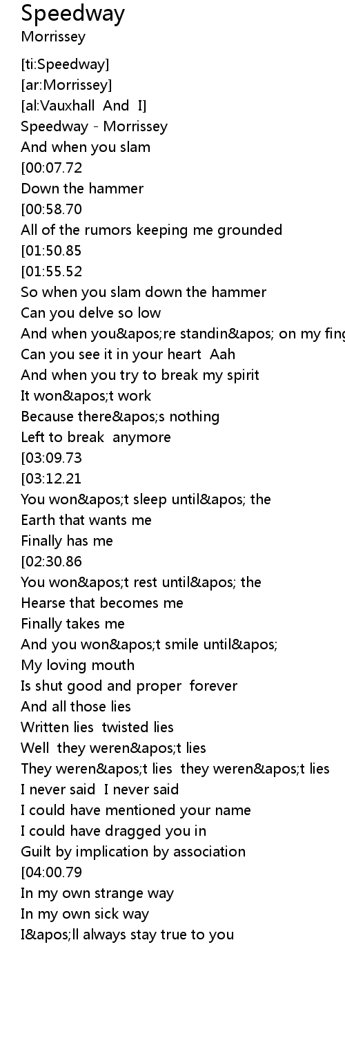 [00:00.67] Speedway - Morrissey