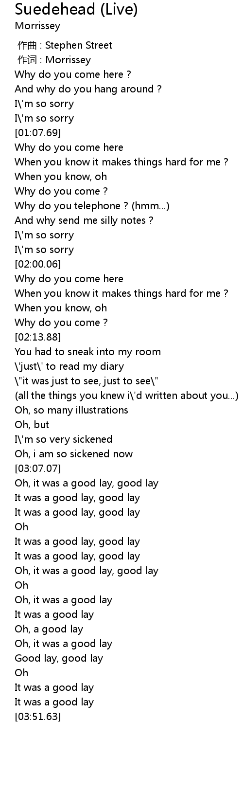 | [00:01.00] | 作词 : Morrissey |
