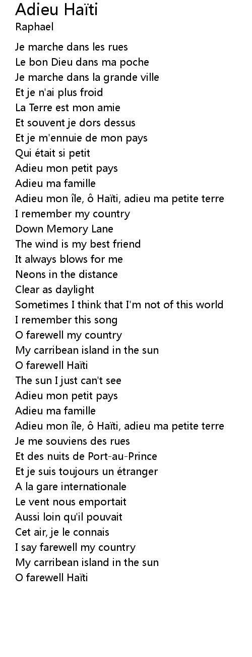 | Song | Adieu Haïti |
