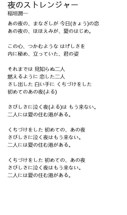 | Song | 夜のストレンジャー |