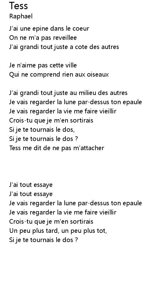 Tess me dit de ne pas m'attacher |