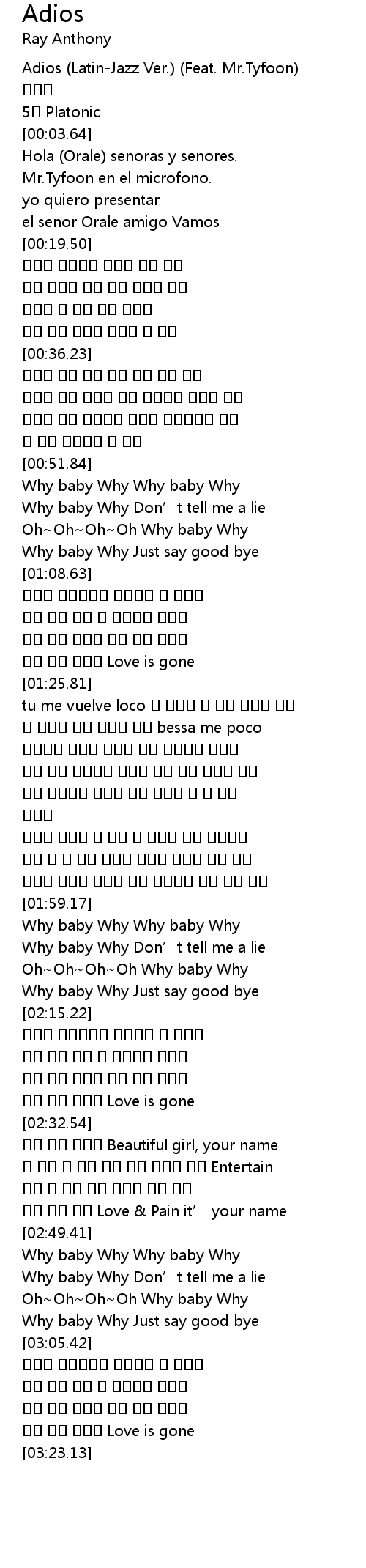 | [00:01.12] | Adios LatinJazz Ver. Feat. Mr. Tyfoon |