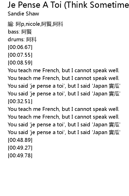| [00:44.53] | You said 'je pense a toi', but I said 'Japan 實瓜' |