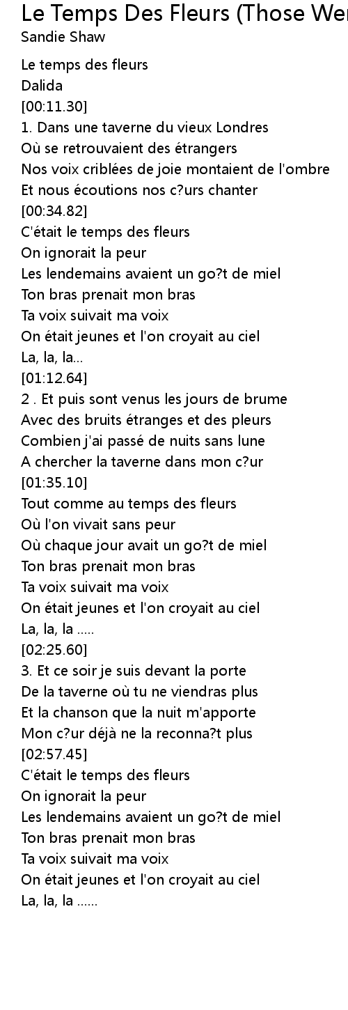 | [00:44.42] | Les lendemains avaient un go? t de miel |