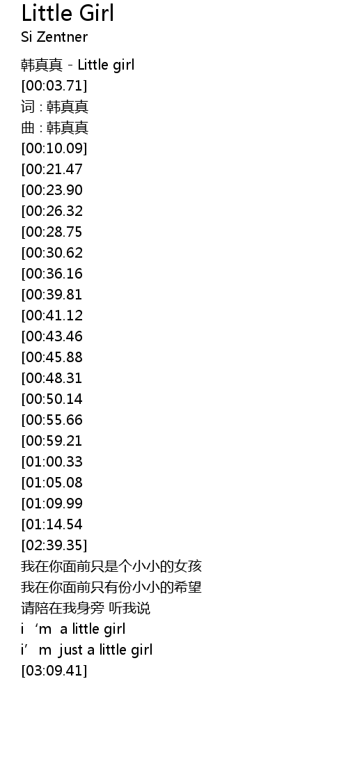 | [00:01.12] | 韩真真 - Little girl |