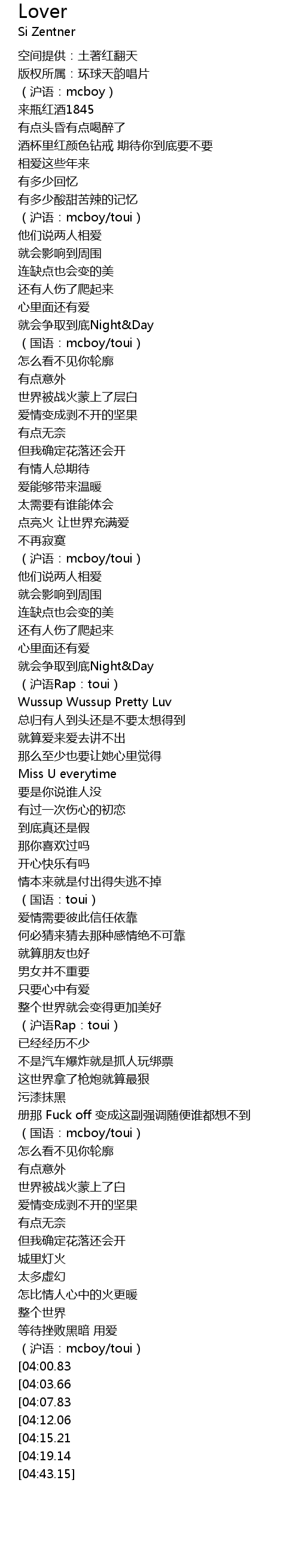 | [03:50.05] | (沪语:mcboy/toui) |