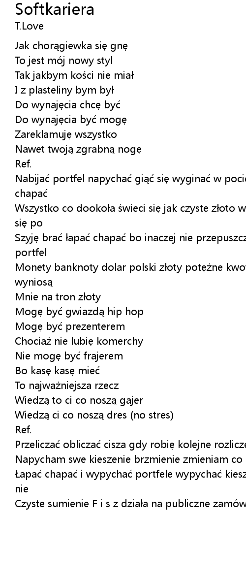 | Napycham swe kieszenie brzmienie zmieniam co minut gn si naginam bra | |