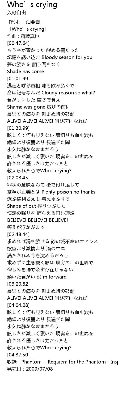 | [00:01.64] | 「Who’s crying」 |