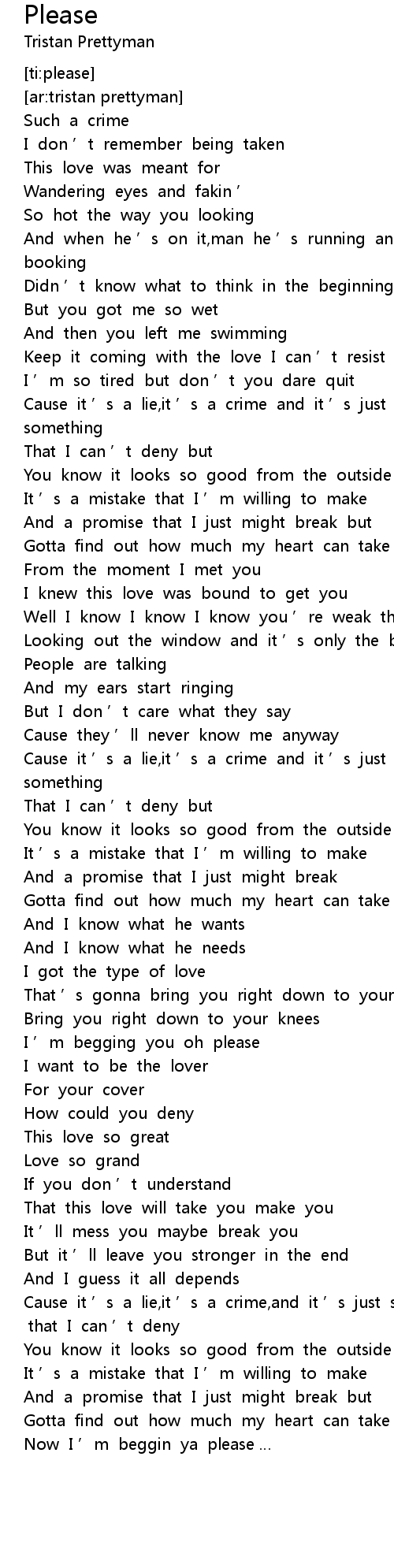 | [02:26.04] | Cause it ' s a lie, it ' s a crime, and it ' s just something that I can ' t deny |