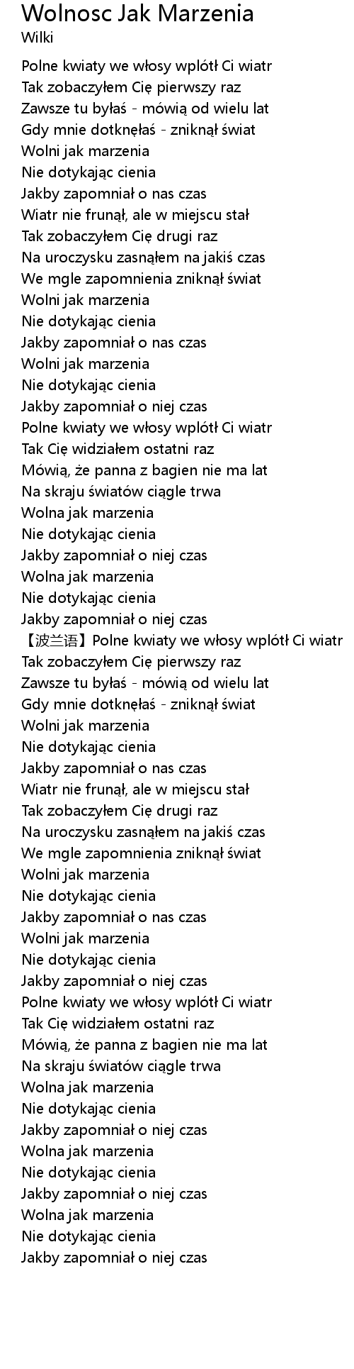 | [00:15.32] | bo lan yu Polne kwiaty we w osy wplo t Ci wiatr |
