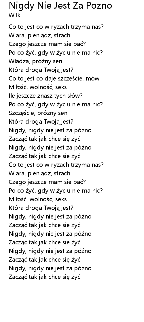| [01:22.78] | Nigdy, nigdy nie jest za po no |
