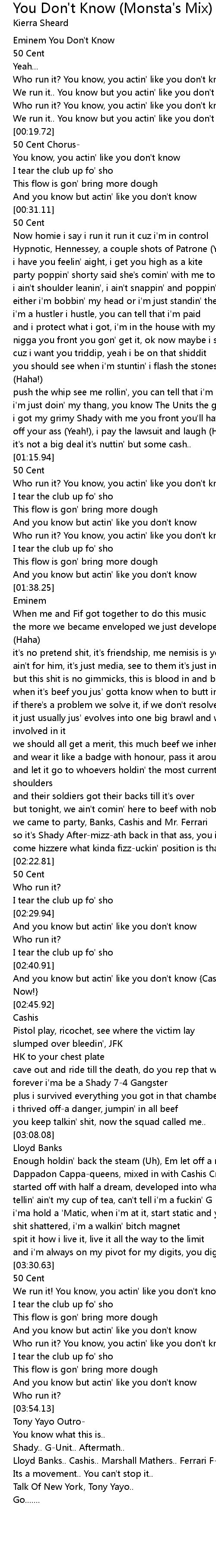 You Don't Know (Monsta's Mix) Lyrics