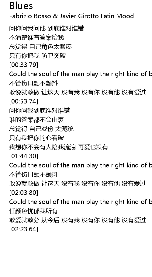 | [01:44.92] | Could the soul of the man play the right kind of blues |