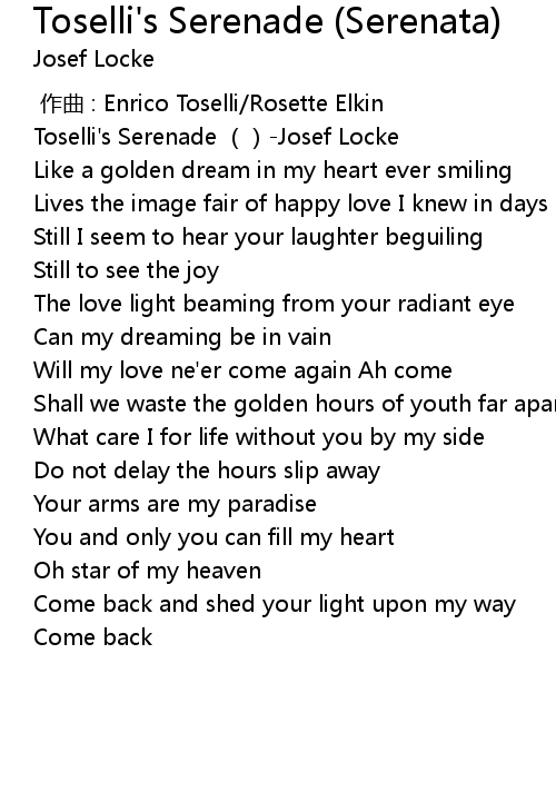 | [00:00.00] | Toselli's Serenade ()-Josef Locke |
